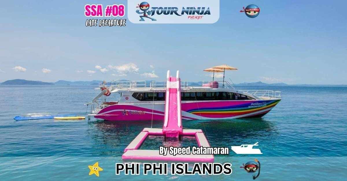 Lazy Daytrip Phi Phi Island by Catamaran Speedboat with Water Slide, including Maya Bay, Pileh Lagoon and the idyllic Bamboo Island. Your daytrip includes snorkeling equipment and return transfers. Experience a most enjoyable day of great scenery, natural beauty and relaxation. The speed-catamaran operates year round.